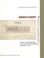 KAPFINGER, Otto. Abgelehnt - nicht ausgeführt: die Bau- und Projektgeschichte der Hochschule für angewandte Kunst in Wien 1873-1993 : ein ebenso unbekanntes wie lehrreiches Kapitel der Wiener Kultur- und Architekturgeschichte. Wien: Stubenring 3, 1993. 119 s.