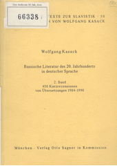 KASACK, Wolfgang. Russische Literatur des 20. Jahrhunderts in deutscher Sprache. München: Otto Sagner, 1991. 281 s. Arbeiten und Texte zur Slavistik, 50.