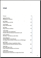 Sborník s podtitulem Město literatury, dvou jazyků a mnoha zprostředkovatelů obsahuje studie o bilingvismu v Čechách (s.13-24), o demografickém i kulturním vývoji Prahy za Rakouska-Uherska (s. 25-42), za první republiky (s. 43-58) a za nacistické okupace (s. 59-72) a příspěvky o překladatelské činnosti bilingvních spisovatelů, zprostředkujících českou literaturu Němcům a německou Čechům. J
