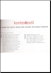 PERSSON, Marga. Kontextextil: 8 Jahre MK Textil. Linz: Kunstuniversität Linz, [2000]. 71 s.