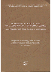 Relacijata selo > grad na slovenskata teritorija denes: (lingvističko-sociološka analiza) : materijali od naučniot sobir po povod odbeležuvanjeto na 15-te godini od smrtta na akademik Božidar Vidoeski (1920-1998) = Relation village > town on the Slavic territory today : (linguistic-sociological analysis) : proceedings of the scientific conference organized in memory of Academician Božidar Vidoeski (1920-1998). Skopje: Makedonska akademija na naukite i umetnostite, 2016. 122 stran.