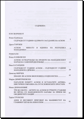 ASNOM i makedonskata država: zbornik na trudovi od naučniot sobir po povod odbeležuvanjeto na sedumdesetgodišninata od održuvanjeto na prvoto zasedanie na ASNOM : održan na 28 noemvri 2014 godina = ASNOM and the Macedonian state : proceedings of the scientific meeting on the occasion of the 70th anniversary of the first assembly of ASNOM : held on 28 November 2014. Skopje: Makedonska akademija na naukite i umetnostite, 2017. 218 stran.
