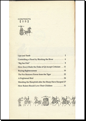 The book contains 36 short classic Chinese allegoric stories that show the characteristic Chinese wisdom. Some of them are: Lips and Teeth, Buying Righteousness, Oranges Change with Their Environment, A Child Prodigy, and The Scholar and the Wolf.