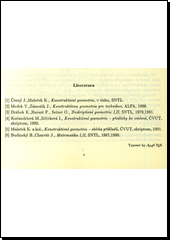 ČERNÝ, Jaroslav a Milada KOČANDRLOVÁ. Konstruktivní geometrie: určeno pro stud. fak. stavební. 1. vyd. Praha: ČVUT, 1992, 151 s. ISBN 80-01-00838-X.