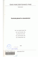 Kontrola jakosti ve stavebnictví. 1. vyd. Praha: ČVUT, 1993. 183 s.