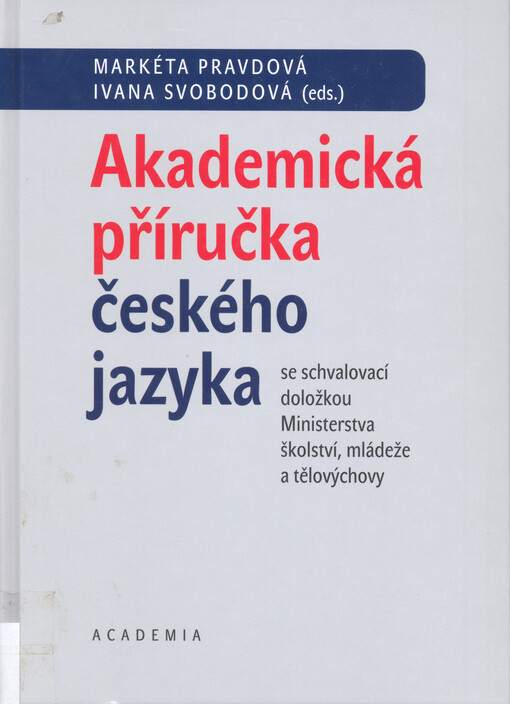 PRAVDOVÁ, Markéta, ed. a SVOBODOVÁ, Ivana, ed. Akademická příručka českého jazyka. 2., rozšířené vydání. Praha: Academia, 2019. 600 stran.