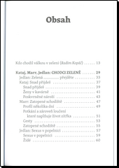 Jedlan, Marr, Kataj, Kajem – to nejsou jména chlapců z klubu, který se inspiroval u Rychlých šípů. To jsou přezdívky Chodců zeleně: Jana Řezáče, Josefa Proška, Jaroslava Rychlého a Miloše Hájka. Jde o jednu z méně známých a literárněhistoricky dosud pomíjených básnických skupin, které fungovaly ilegálně v Praze za druhé světové války a těsně po ní. Navazovali především na předválečný surrealismus, který později přepsali vlastním tvůrčím vkladem na takzvaný monstrualismus. Z dlouhé řady realizovaných samizdatů jsou některé nenávratně ztraceny, jiné se dochovaly. A právě všechny ty dochované – vedle titulních Chodců zeleně jde o sborníky Mezitím, Ochranné prostředky, Schopnost skutečnosti, Záchody a PF 49 – jsou shromážděny v tomto svazku.
