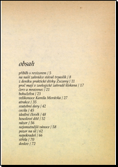 První sbírka povídek Jiřího Suchého z roku 1966 obsahuje 17 povídek a povídkový doslov. Kniha je ilustrovaná autorem. Povídky: Příběh s revizorem Na naší zahrádce stával trpaslík Z deníku praktické dívky Zuzany Proč mají v zoologické zahradě klokana Červ a mravenec Bohuželva Velikonoce Kamila Morávka Atrakce Svatební dary Cecila Ideální člověk Houslové dítě Názor Nejsmutnější vánoce Pozor na úl! Nepokradeš Střela Doslov