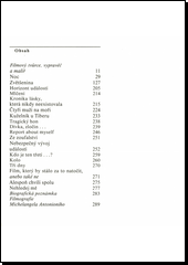 Jednostránková lapidární dramata ze soukromí, anekdoty ze života lepší společnosti s ironickým podtextem jsou zařazeny vedle rozsáhlejších, dějem nabitých próz. Součástí tohoto souboru je mimo jiné i literární zpracování proslulých filmů Zvětšenina a Noc.