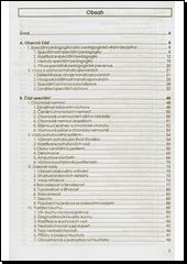 Obecná část. Speciální část: chronické nemoci, vady pohybového systému, zrakové vady, postižení sluchu, vady a poruchy řeči, mentální postižení, poruchy chování, psychické poruchy, kombinované vady, parciální nedostatky.
