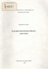 STRMISKA, Maxmilián. Italské politické strany: (1945-1994). 1. vyd. V Brně: Masarykova univerzita, Katedra politologie, 1995. 83 s.