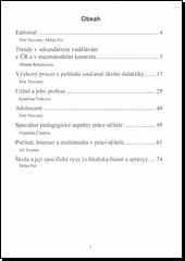 Publikace podává komplexnější obraz sekundárního vzdělávání nejen v České republice, ale i v mezinárodním kontextu. Naznačuje současný stav i vývojové tendence, které dnes nutně mají a napříště patrně ještě výrazněji budou mít vliv na české střední školství.
