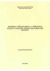 STRECKOVÁ, Yvonne. Reforma veřejné správy a veřejných financí a faktory efektivnosti rozvoje regionů. 1. vyd. Brno: Masarykova univerzita, Ekonomicko-správní fakulta, 2003. 196 s.