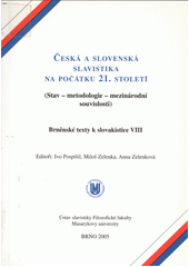 POSPÍŠIL, Ivo, ed., ZELENKA, Miloš, ed. a ZELENKOVÁ, Anna, ed. Česká a slovenská slavistika na počátku 21. století: (stav - metodologie - mezinárodní souvislosti). 1. vyd. Brno: Masarykova univerzita v Brně, 2005. 363 s. Brněnské texty k slovakistice, 8.