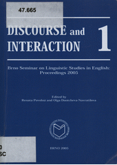 Discourse and interaction 1: Brno seminar on linguistic studies in English : proceedings 2005. 1. vyd. Editor Renata POVOLNÁ, editor Olga DONTCHEVA-NAVRATILOVA. Brno: Masarykova univerzita, 2005, 151 s. Sborník prací Pedagogické fakulty Masarykovy