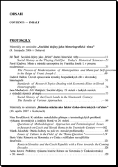 Publikace uvádí soubor několika textů zýabývající se především těmito tématy: Sociální dějiny jako histografické téma /koncepty, problémy, proluky, vztahy ke kulturním dějinám, město a městská smaospráva 1860-1914 ad./, Romská otázka ako faktor Česko-slovenských vzťahov /metodologický prístup a terminologické problémy vo výskume slovenských a českých Rómov, ad./ a Myšlenková tvář šedesátých let 20. století /například o čom rozmýšľal M. Kusý v 60. rokoch, reformný čas ilúzií, ad./. Kniha je pak obohacena o Študie, Materiály a dokumenty, Blahopřání, Ze života komise, Recenze a kritiky a Z vědeckého života.