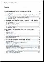 Cílem publikace je nastínit mezinárodní obchodování od jeho počátků až po Světovou obchodní organizaci, mezinárodní ekonomické právo, světové obchodní organizace, mezinárodní měnový systém, mezinárodní měnový fond, světovou celní organizaci, dále problematiku daní a mezinárodního obchodu, mezinárodní přepravní právo. Text je systematicky zpracován tak, že každá kapitola zahrnuje vždy úvodní historický exkurz, až po kontrolní otázky k danému výkladu.