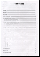Práce se zabývá analýzou informací o počasí v diáriích premonstrátského kláštera v Hradisku a převorství na Svatém Kopečku za období 1693–1783. Ze záznamů byla provedena analýza teploty vzduchu, srážek, větrných poměrů, oblačnosti a hydrometeorologických jevů. Analyzované denní záznamy počasí byly základem pro jejich interpretaci v podobě vážených měsíčních teplotních a srážkových indexů a ty následně porovnány s indexy odvozenými z let 1961–2000. Záznamy o počasí rozšířily také dosavadní poznatky o výskytu hydrometeorologických extrémů v Českých zemích ve studovaném období. V příloze publikace jsou zahrnuty veškeré interpretované denní zprávy o počasí a příbuzných jevech z analyzovaných diárií.