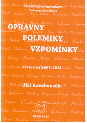 RAMBOUSEK, Jiří. Opravny - polemiky - vzpomínky: texty z let 2007-2013. 1. vyd. Brno: Masarykova univerzita, 2013. 159 s.Spisy Pedagogické fakulty Masarykovy univerzity, sv. č. 166.