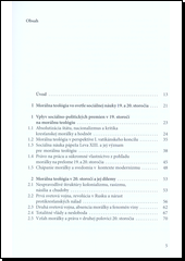 Monograph The fundaments of Moral Theology in its historical context II (19th–20th century and specific moral issues of the 21st century) is divided into two parts. In the first part are moral dilemmas reflected on the background of unjust political and social structures in the 19th and 20th century. In the second part, emphasis is placed on the culture of life and human dignity, as they resonate in moral Encyclical letters; on the rights, obligations and responsibility of the people to the beauty of creation. For this reason, the text accents need for virtue's renaissance, which could contribute in 21st century to change in interpersonal relationships and to formation of moral personalities.