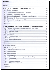 Záměrem monografie je seznámit čtenáře s mezioborovou disciplínou ekonomická analýza práva, a to na poli práva civilního (rodinné právo, smluvní právo, vlastnické právo, závazky z deliktu, pracovní právo, procesní právo) a představit ekonomickou analýzu jako jednu z metod právní interpretace, jejímž měřítkem jsou náklady a užitek. Monografie by měla přispět ke zdůvodnění toho, proč je pro právníka užitečné seznámit se s teoriemi mikroekonomie.