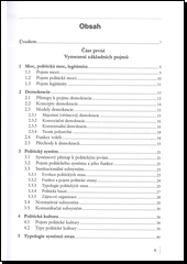 Učebnice je zaměřena především na prezentaci základních pojmů politického systému České republiky. Jejich pochopení je nezbytné nejen pro úspěšné zvládnutí dalších předmětů, jako například státovědy a ústavního práva, ale i pro občanskou orientaci v politice. 4., aktualizované vydání