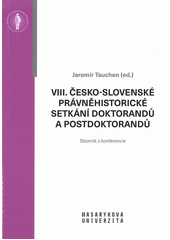 TAUCHEN, Jaromír, ed. VIII. česko-slovenské právněhistorické setkání doktorandů a postdoktorandů: sborník z konference. 1. vydání. Brno: Masarykova univerzita, 2020. 396 stran. Spisy Právnické fakulty Masarykovy univerzity ; sv. č. 693 =, Acta Universitatis Brunensis Iuridica ; sv. č. 693., Scientia.