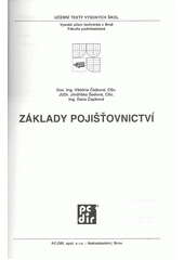 ČEJKOVÁ, Viktória. Základy pojišťovnictví. Vyd. 1. Brno: PC-DIR, 1997. 145 s., [10] s. příl. Učební texty vysokých škol.