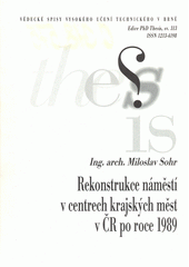 SOHR, Miloslav. Rekonstrukce náměstí v centrech krajských měst v ČR po roce 1989 =: Rehabilitation of public spaces in the urban centres of regional capitals after 1989. [Brno: VUTIUM], c2005, 32 s. Vědecké spisy Vysokého učení technického v Brně.
