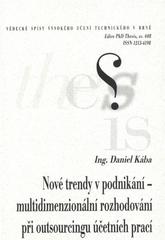KÁBA, Daniel. Nové trendy v podnikání - multidimenzionální rozhodování při outsourcingu účetních prací =: New entrepreneurial trends - accountant tasks outsourcing based on multidimensional decision-making : zkrácená disertační práce. [Brno: Vysoké