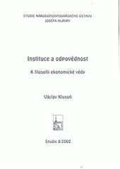 KLUSOŇ, Václav. Instituce a odpovědnost: k filosofii ekonomické vědy. Praha: Národohospodářský ústav Josefa Hlávky, 2002. 202 s. Studie Národohospodářského ústavu Josefa Hlávky, 8/2002.