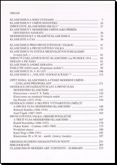 První novodobá publikace souhrnně se zabývající klasicismem ve výtvarném umění. Definuje ho jako pojem a vysvětluje jeho významy od antiky do 20. století. Podrobně se zabývá klasicistními projevy v moderním evropském, především francouzském umění a následně v českém prostředí, od 90. let 19. století až do 30. let minulého století. Samostatné medailony pojednávají o André Derainovi, Pablu Picassovi, Janu Preislerovi, Bohumilu Kubištovi, Josefu Čapkovi, Rudolfu Kremličkovi a Otakaru Kubínovi – Coubine a dalších. Kniha upozorňuje na důležitou roli klasicistních tendencí v moderním umění a dokazuje, že tradice a originalita si nemusí protiřečit.Zvláštní pozornost si zaslouží obrazová příloha. Autorka vybrala reprezentativní soubor méně známých a vzácných výtvarných děl.