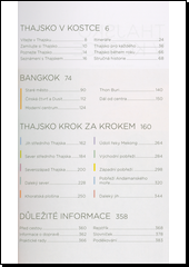 Průvodce přibližuje Thajsko a jeho turistické zajímavosti i památky podle jednotlivých lokalit. Nechybí tipy na výlety, volnočasové aktivity, návštěvy památek a muzeí, noční život, turistika v přírodě, též info o kultuře či gastronomii.