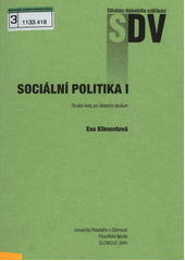 KLIMENTOVÁ, Eva. Sociální politika I. 2. vyd. Olomouc: Univerzita Palackého, 2004. 80 s. Studijní texty pro distanční studium.