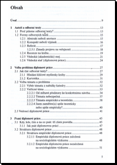 Tato rukověť, tedy praktická příručka, je určena studentům společenskovědních a humanitních oborů, kteří se chtějí a potřebují naučit napsat odborný text. V rukověti jsou uvedeny příklady psaní různých forem odborných textů. V první kapitole věnované autorům a odborným textům se dozvíte, proč studenti, učitelé a vědci píšou odborné texty. Druhá kapitola se věnuje volbě problému diplomové práce. Třetí kapitola pojednává o zásadách týkajících se obsahové stránky diplomové práce, čtvrtá se věnuje zásadám formální úpravy diplomové práce. Pátá kapitola je věnována dokončovacím pracím na diplomové práci, tedy její kompletaci.