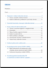 Publikace má čtenářům přiblížit problematiku "rizikového chování", vývoj, změny a charakteristiky osobnosti adolescentů a v neposlední řadě informovat o převodu a standardizaci psychodiagnostických nástrojů. V první části se naše pozornost soustředí na pojmové, obsahové vymezení sociální normy a normality v rámci evropského, západního myšlení. Psychologové, adiktologové, sociologové a etopedové v rámci svých oborů využívají různorodý pojmový aparát označující takové formy chování, které vedou k porušení mravních, sociálních nebo právních norem a jež mají negativní důsledky pro samotného aktéra anebo pro jeho sociální okolí, společnost.