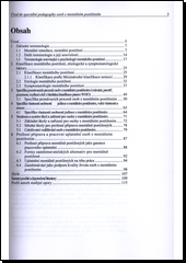 Obsahem textu je analýza základní terminologie týkající se moderního pojetí pojmů, specifika poznávacích procesů osob s mentálním postižením a jejich vlastností. Samostatné kapitoly tvoří struktura škol a zařízení pro jedince s mentálním postižením a možnosti jejich uplatnění na trhu práce. Text je koncipován v souvislosti s novými trendy práce směřujícími ke kvalitě života osob s mentálním postižením u nás a ve světě.
