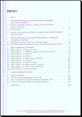 Publikace se věnuje dětem, žákům či studentům, kteří se musejí při vzdělávací činnosti potýkat se znevýhodněním z důvodu sluchového postižení nebo oslabení sluchového vnímání. tato dílčí část Katalogu posdpůrných opatření přináší řadu doporučení, metod a forem práce, jak s těmito dětmi pracovat. Jsou popsány v tzv. kartách podpůrných opatření a uspořádány do deseti oblastí podpory. S ohledem na sluchové postižení o oslabení sluchového vnímání nás budou především zajímat doporučení týkající se zasedacího pořádku, úpravy prostředí, rozvoje jazykových kompetencí, doporučení pro komunikaci se sluchově postiženými osobami apod. Zvláštní důraz je kladen na pedagogickou diagnostiku - tedy na činnsot, kterou pedagogové vykonávají v rámci své běžné pedagogické práce.