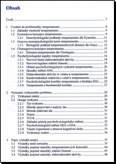 Výzkumná monografie se zabývá vztahy mezi elektrodermální aktivitou a srdeční činností a temperamentem. Jako výzkumné metody jsme použili dotazníky Dopen a TCI-R a měření elektrodermální aktivity a srdeční činnosti v mentálních kognitivních zkouškách. Jako mentální zkoušky jsme použili: Stroopův test, aritmetiku a verbální fluenci. Ve výzkumu jsme disponovali výzkumným vzorkem N = 62 lidí. Výsledky jsme zpracovali pomocí popisné statistiky a neparametrické korelační statistiky. Celkově jsme sledovali vztah temperamentu k fyziologickým výsledkům v bazální úrovni, reaktivitě a zotavení se. Na základě výsledků se objevily zajímavé vztahy mezi temperamentem a fyziologickými projevy. Některé očekávané vztahy jsme však také statisticky nepotvrdili.