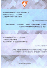 HEJLOVÁ, Vendula. Bezdrátová senzorová síť pro monitoring ovzduší ve středu města Olomouce (E-BOSS): autoreferát disertační práce = Wireless sensor network for air pollution monitoring in the center of Olomouc city : Ph.D. thesis summary. 1. vydání