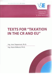 TEPPEROVÁ, Jana a Hana ZÍDKOVÁ. Texts for "Taxation in the CR and EU": August 2015. Vydání první. Praha: Vysoká škola ekonomická v Praze, nakladatelství Oeconomica, 2015, 73 s. Vysokoškolská skripta. ISBN 978-80-245-2107-7.