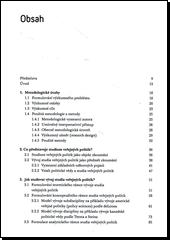 Autor považuje studium veřejných politik za specifickou subdisciplínu politických věd, kterou charakterizují všechny přístupy věnující se zkoumání veřejných politik. Jeho monografie, zpracovaná z umírněných konstruktivistických pozic, shrnuje poznatky získané v explorační fázi výzkumu vývoje českého studia veřejných politik, které pro lepší porozumění zasazuje do evropského kontextu. Dospívá k závěru, že české studium veřejných politik výrazně nezaostává za studiem francouzským a německým, nicméně jeho dalšímu rozvoji paradoxně brání relativní úspěch jednotlivých přístupů a absence společné odborné komunity.