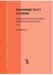 Publikace: Souhrnné texty z chemie pro přípravu k přijímacím zkouškám II. Díl (3. vydání) - Eva Streblová. Druhý díl souhrnných textů z chemie je určen zahraničním i českým studentům, kteří se připravují na studium lékařství, farmacie, veterinárního lékařství a přírodovědných oborů, kde chemie není hlavním předmětem studia. Kniha shrnuje základní poznatky z obecné, anorganické a organické chemie. Kapitoly jsou doplněny otázkami k opakování učiva a příklady k důkladnému procvičení probrané látky. Počáteční kapitoly jsou přizpůsobeny jazykovým znalostem zahraničních studentů. Publikace: Souhrnné texty z chemie pro přípravu k přijímacím zkouškám II. Díl (3. vydání) - Eva Streblová.