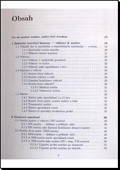Učební text pokrývá vybrané oblasti z lineární algebry, jednoho z úhelných kamenů matematiky, se kterým se setkávají studenti nejen matematických programů.Kniha prochází klasické oblasti lineární algebry, přičemž výklad samotný je veden z možná ne zcela obvyklé pozice. Konkrétně se věnuje popisu základních stavebních kamenů oboru, totiž vektorů a matic, jejich součinům a řešení soustav lineárních rovnic. Text přitom čtenáře vybaveného obvyklými středoškolskými znalostmi plynule doprovází až do abstraktního vektorového prostoru.