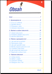 Brožurka popisuje nejzákladnější funkce Wordu verze 2003 počínaje jeho spouštěním, přes ukládání a uspořádávání dokumentů po základy psaní a formátování dokumentu. Barevné obrázky v textu ilustrují jednotlivé kroky uživatele při práci s Wordem 2003.