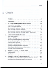 Milí rodiče, vítáme vás u knihy, která vám přináší nápady, tipy a povzbuzení při výchově vašeho dítěte se zaměřením na vývoj jeho psychické odolnosti. Předmětem je především vytváření, rozvoj a posilování odolnosti dětí jako jeden z předpokladů jejich úspěšného a snad i šťastného života v budoucnosti. Autorky této publikace se pokoušejí předat základní principy vývoje psychicky odolné osobnosti a svůj výklad doplňují řadou příkladů z jejich profesní praxe i každodenních zkušeností. Součástí jsou i doporučení, jak dítě nejen psychicky "otužovatt" v době pohody, ale také jak je provést běžnými zátěžovými situacemi, jako je nástup do školky, stěhování, návštěva lékaře a další. Díky této knize mnozí rodiče zjistí, jak moc mohou pomoci svým dětem, aby žily aktivní život plný přátelství a lásky, byly zvídavé, uměly přijímat životní výzvy, cítily důvěru, měly cit pro spravedlnost, byly dostatečně statečné a aby podle tohoto citu jednaly.