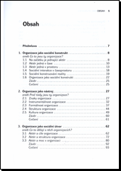 Kniha nás vede do světa, jehož jsme tvůrci: do světa organizací. Jejich význam rostl spolu s civilizačním vývojem a dnes si neumíme svůj každodenní život bez nich představit. Budeme poznávat organizace jako formální sociální útvary, ve kterých je vykonávána moc (nebudeme tedy věnovat pozornost neformálním sociálním skupinám). Cestu začneme otázkou "Co to jsou ty organizace??", na niž budeme hledat odpověď v úvahách o sociálním konstruování reality. Odpověď nám umožní tázat se "Proč tady jsou ty organizace??" a uvažovat poté o jejich nejvýznamnějších znacích. Třetí milník na cestě vytyčíme položením otázky "Co to v těch organizacích dělají??" a odpovědi nás vrátí na začátek naší cesty, k aktérovi. V jeho mysli organizace začíná a končí, jeho aktivitami žije. Poslední metou na naší cestě bude naznačení možnosti hledání odpovědi na otázku "Co ty organizace mezi sebou mají??", kterou opustíme mikrosvět jednotlivých organizací a nakročíme do světa rozmanitosti jejich vztahů.