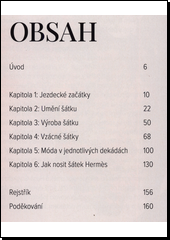 Čtvercový šátek Hermès je nádherný, vyhledávaný a univerzální módní doplněk. Mnozí po něm touží a někteří tyto šátky i sbírají. Kniha Šátky Hermès – jejich příběh odhaluje historii a vzory těchto ikonických hedvábných skvostů, od jejich vzniku, které se datují na začátek 20. století, až do dnešní doby. Přináší zákulisní pohled na řemeslnou dovednost a mistrné zpracování každého kusu. Ukáže vám vzory mimořádných a vzácných šátků, které si vysloužily neoficiální označení „svatý grál“, i ty hlavní, klasické šátky a přiblíží neobyčejná díla proslulých umělců. Knížka obsahuje zajímavé informace o různých stylech Hermès, měnících se v průběhu času, a typické znaky pravých šátků Hermès. Popisuje také několik zúsobů, jak si šátek uvázat, a mapuje, pro které celebrity je nošení těchto šátků charakteristické.