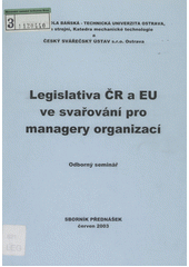 Autor: Legislativa ČR a EU ve svařování pro managery organizací (2003 : Ostravice, Česko), Pindorová, Aurelie, Vysoká škola báňská - Technická univerzita Ostrava a Český svářečský ústav