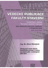 SKÁCELOVÁ, Alena. Zhodnocení vazeb výkonů investičního procesu s vazbou na územní plán a strategický plán obce: autoreferát disertační práce. Ostrava: VŠB - Technická univerzita Ostrava, 2008, 30 s. Vědecké publikace Fakulty stavební Vysoké školy b